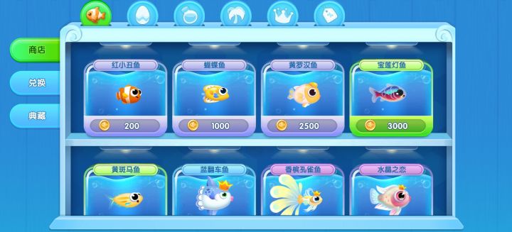 4种通过商店购买鱼蛋孵化获得,3种通过金币抽奖,2种通过限时出游获得,1种限时抽奖,1种排行榜奖励,1种工会。