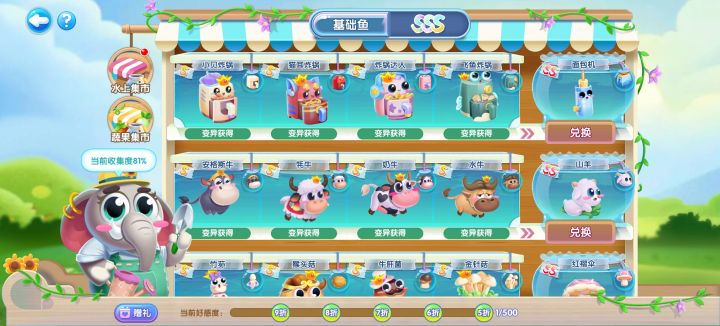 四季集市基础鱼通过12种子鱼变异获得,加上稻草人即可满足80%开启蔬菜集市。