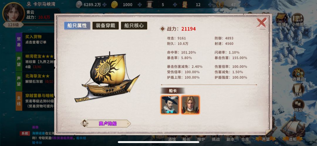 1:主攻船 6攻高卢 郑芝龙 12星 定向满(活动拉满)天赋石全部给,暴击石6个,核心随意,提升不大,