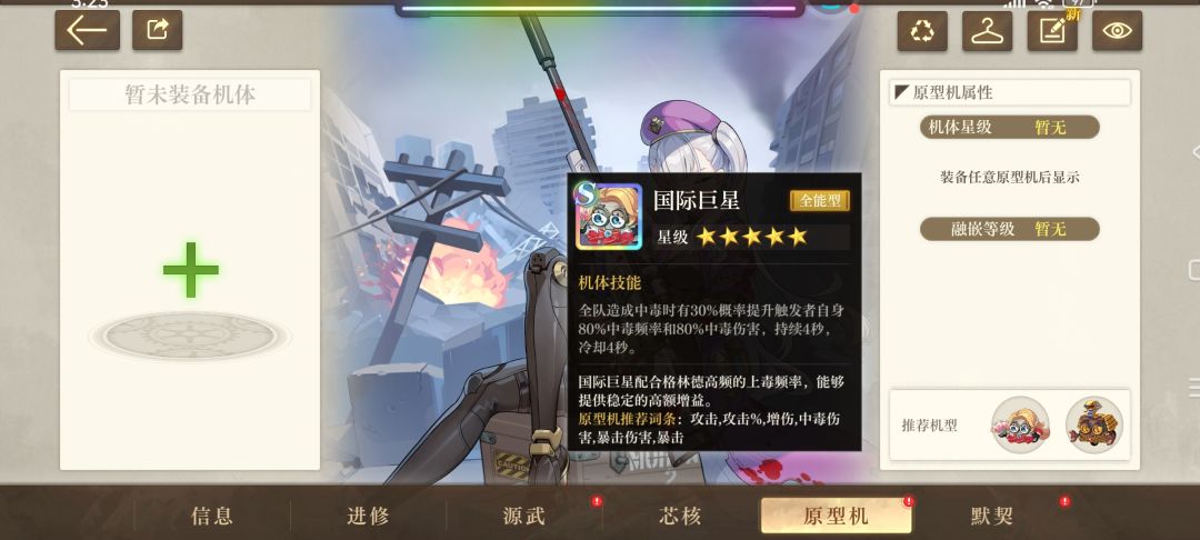 新角色SP银喉,格林德银喉招募到了。芯核为暗夜噩梦,原型机是国际巨星。感觉蛮好用的一个毒组角色。