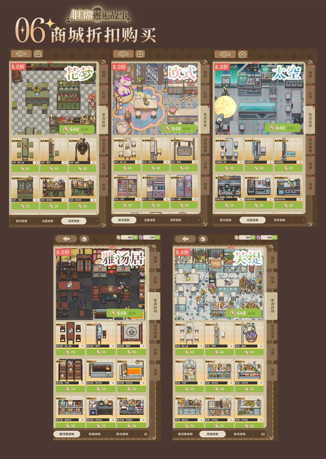 ★商城购买家具皮肤★ 五种家具皮肤开启售卖!人民币与叶脉石兑换比例为:1:10。