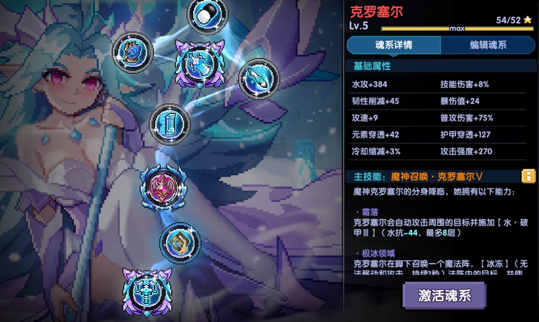 技能方面这里重点讲【噬身】,作为薇帕的紫技能,可以提供大量水属性伤害