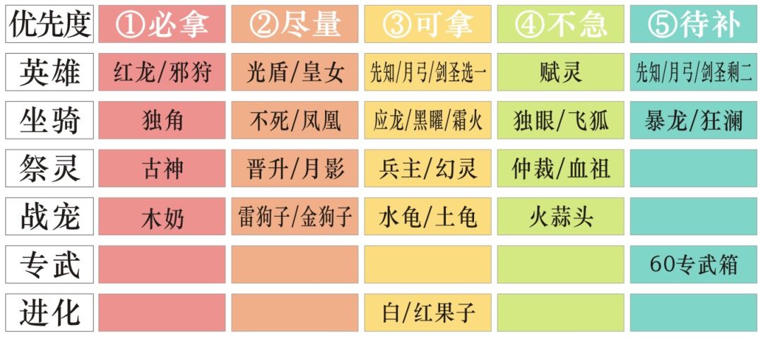 第一次登楼没红龙,第二次之后都有红龙,其他UR官方可能会按已上线时间在安排在登楼出现,大家按下表优先度拿就好,有啥拿啥。
