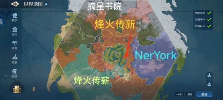 烽火传薪远征摘星书院将其灭国,沃地已经被烽火双盟围了个水泄不通,其他联盟尚无道路进入沃地。