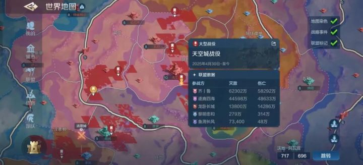 沃地整体已被齐|鲁、龙卧长城、逐鹿四海瓜分,天空城目前被齐|鲁拿下,不过各盟围绕着天空城展开了激烈的争夺!