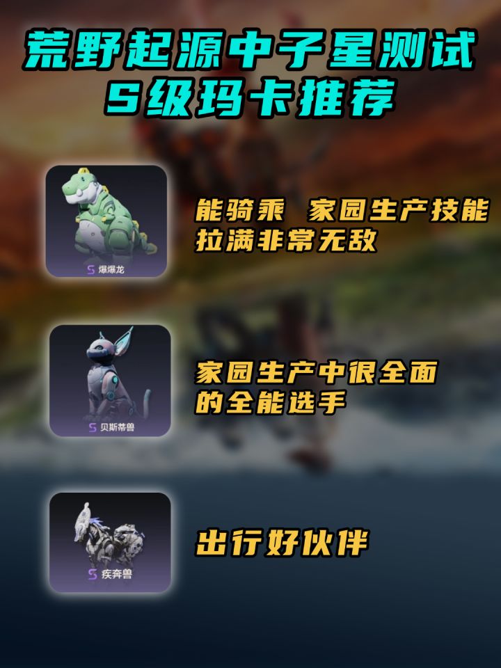 S级玛卡不知道那只好用?通行证可以白嫖的爆爆龙别错过,能骑乘(通行证送十只,可以直接五星)家园生产技能拉满,非常无敌。另外还推荐贝丝蒂兽,也是家园生产中很全面的全能选手,可以让你在家园等级不高的情况下快速且全面的让家园运转起来。另外附上可获取S级玛卡全图鉴,快来看看你还差哪只就能全收集了!