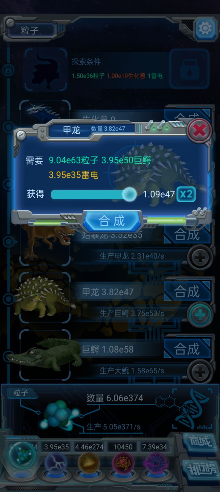 剩余甲龙可以合成10e37始暴龙,可以用来升级甲龙复制等级