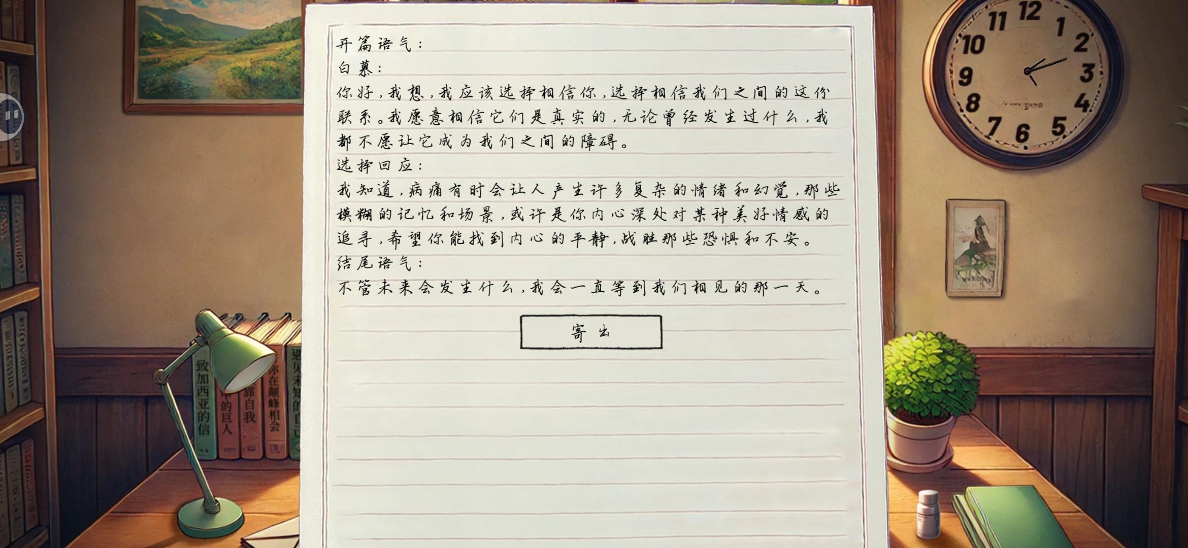 翻遍54篇帖子也没有true end的攻略,于是直接盗图了,现在想来应该是直接挑破真相外加安慰