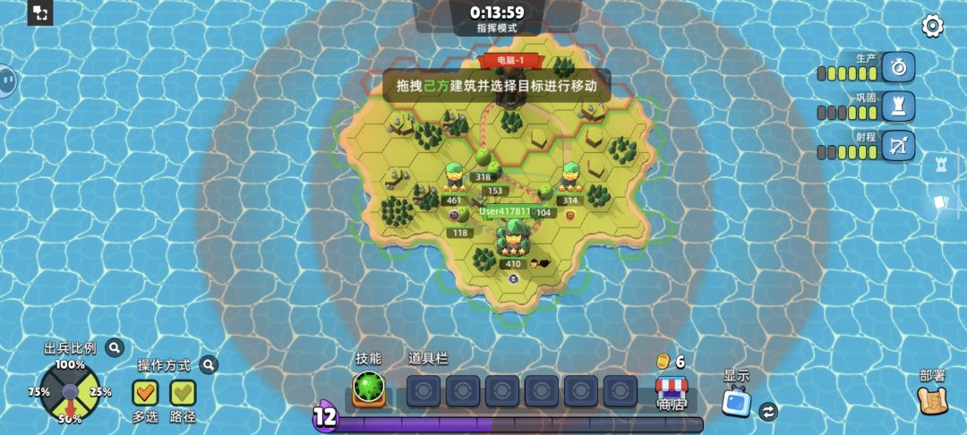 嗯,我没说错,第一关电脑真没权限更改哨塔,更换成哨塔过后就是公平竞争了