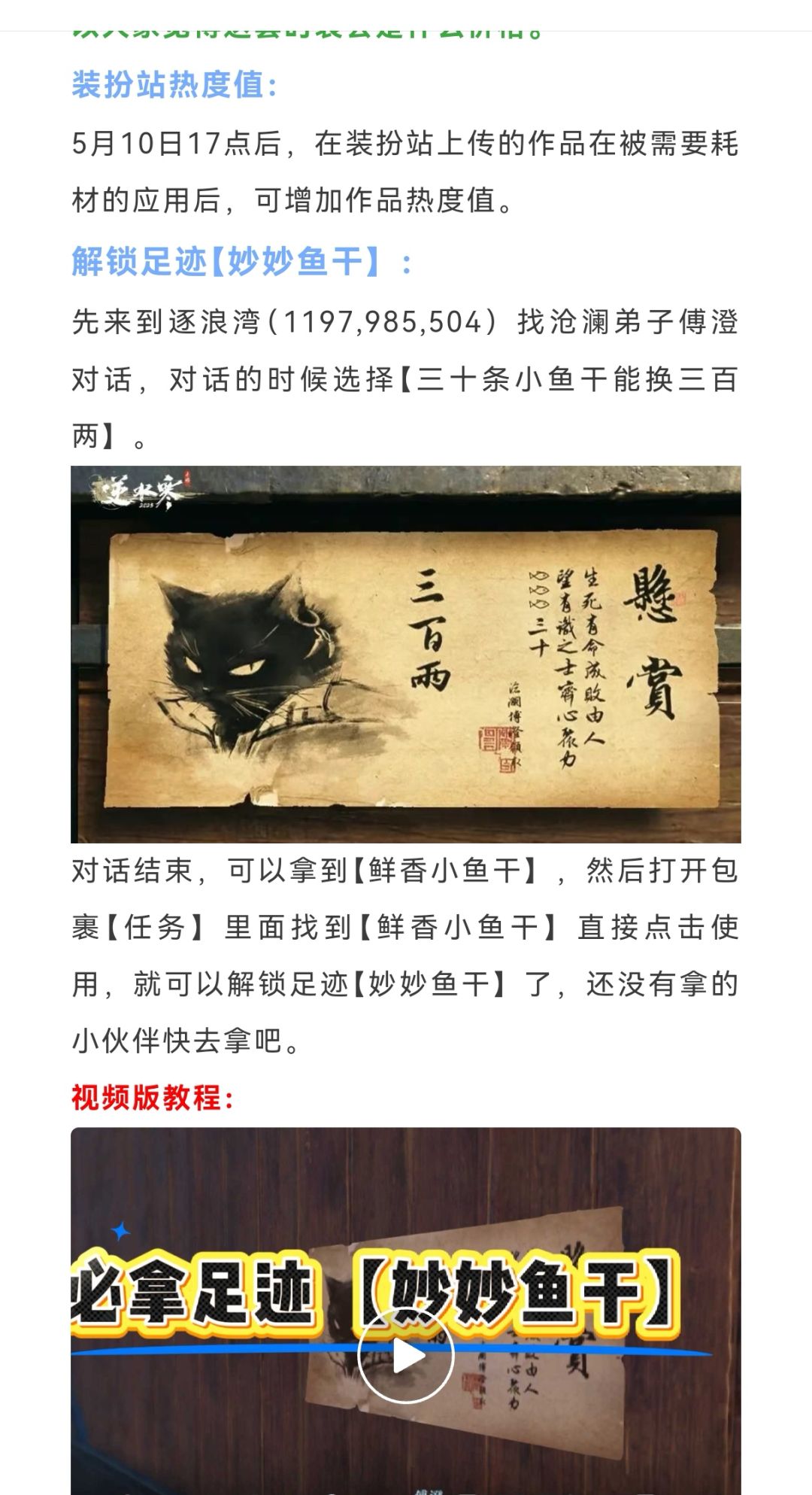 逆水寒明天68块时装,必拿足迹【妙妙鱼干】,下周2套直售时装,应援战令开启,跨服联赛海选开启!