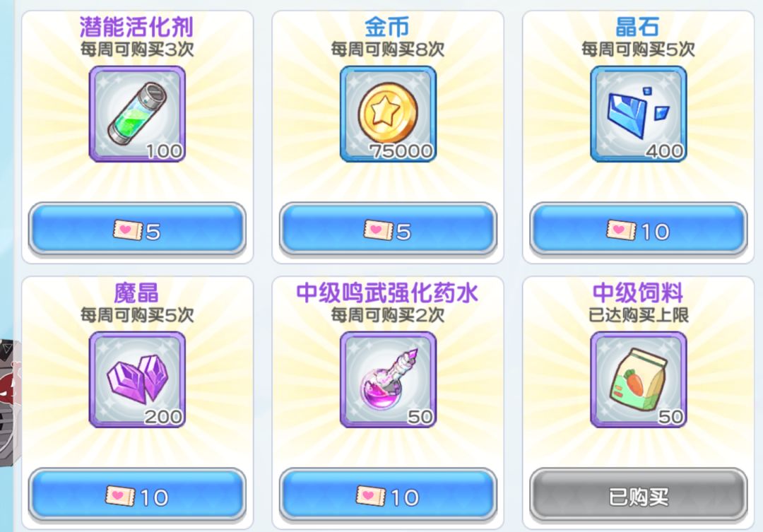 在缺少饲料的时候可以购买 这个是每天刷新的