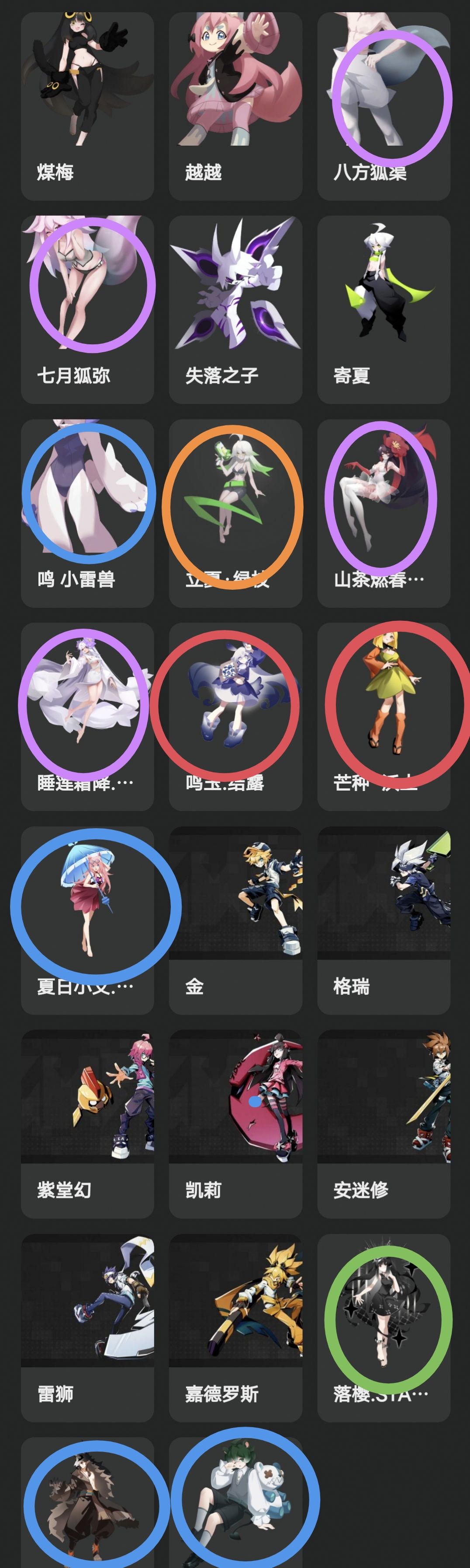 因为我懒所以我会以不同颜色的标注来表示我的看法。如果没有标注的话,就是常驻、绝版,密钥和活动获得的。