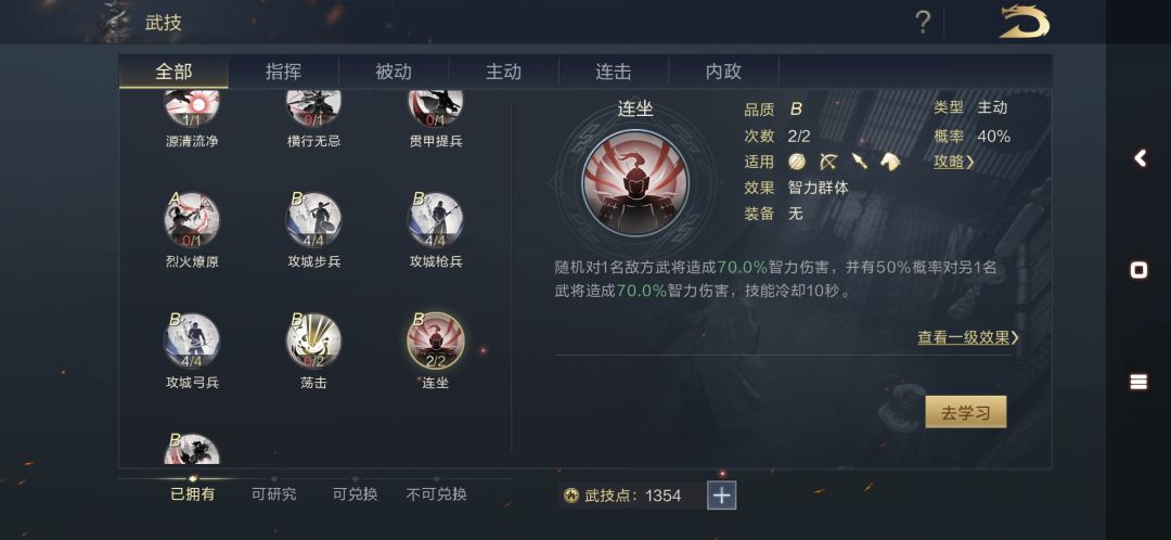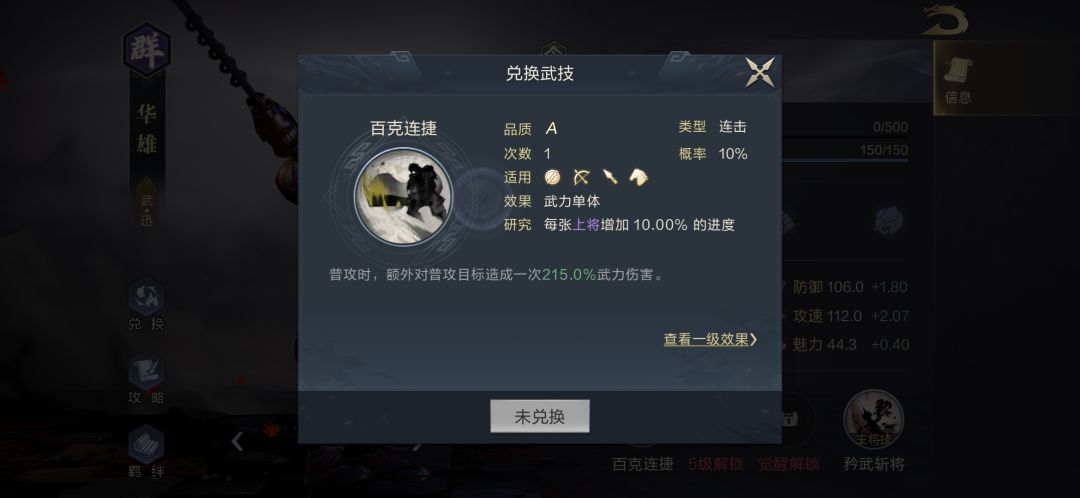 四星升级技能推荐:百克连捷,横家刁军,感召黄天,斗勇夺械。(都是四星连击战法,加上爆头能力)