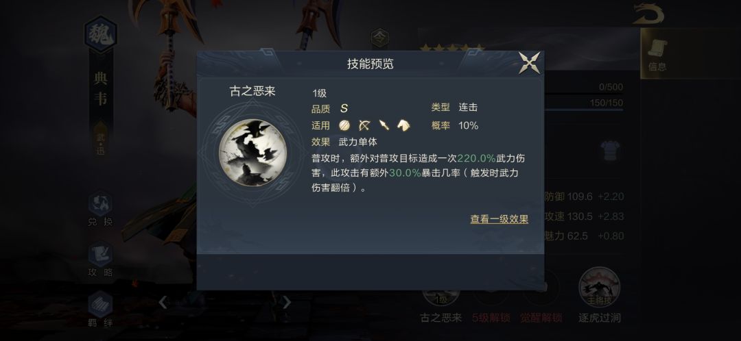 主战法:古之恶来(暴击很香有木有,追击战法暴力,想想就舒服。)
