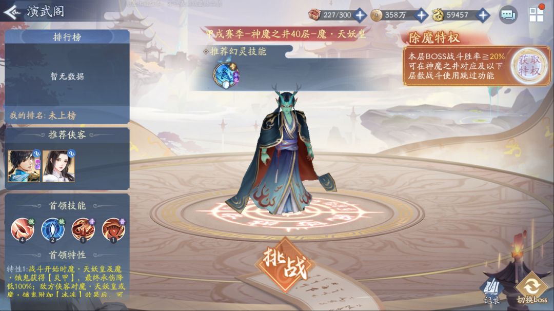 新1号Boss魔·天妖皇50层挑战所需幻灵技能为:三星异化幻灵欢愉主动技——【沧溯归潮】