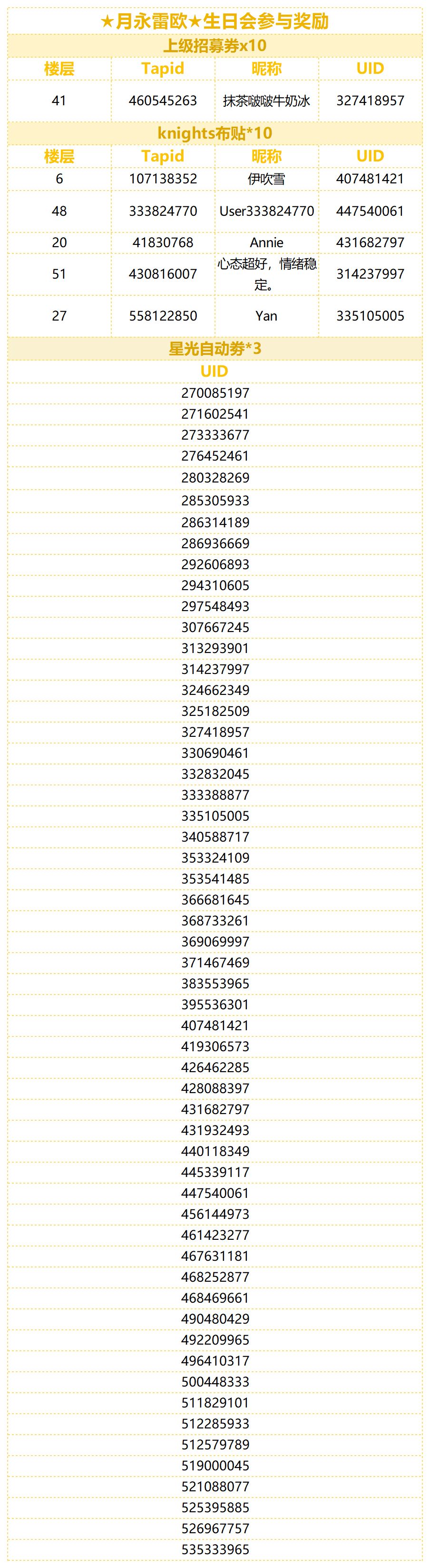 助理君已统计全部正常显示楼层与图片,奖励会在7个工作日内发放到制作人的礼物盒中,请注意查收~!