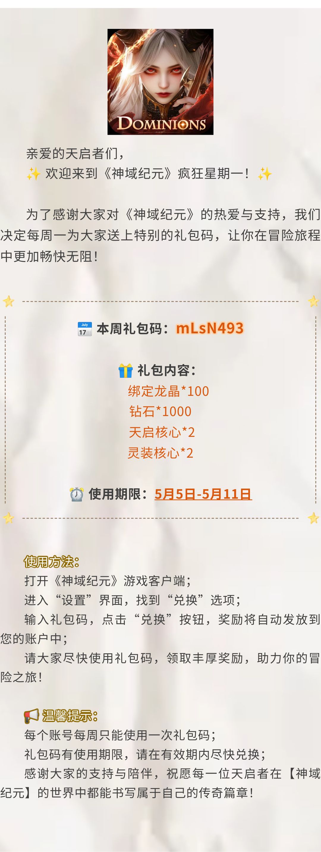 【神域纪元】丨疯狂星期一!礼包码放送!