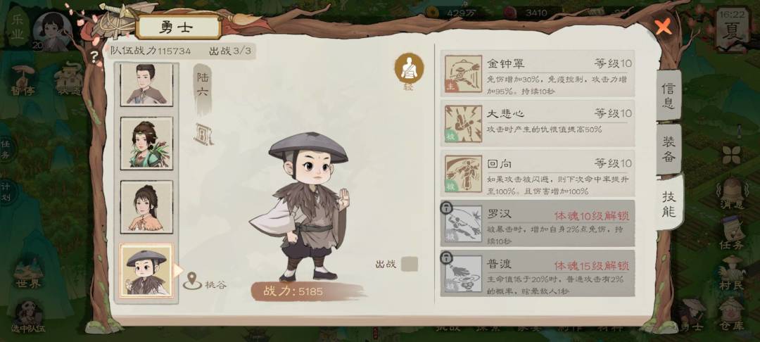 假如培养的勇士是和尚,孟河和乔河,他们的技能可以让自己变得更耐打,所以护甲栏应当带石榴石和影玉,优先作为坦克承担伤害,比如打四凶兽时,如果坦克会死,就尽量让他变得更肉。