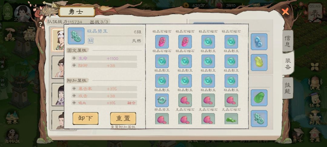 随着勇士越来越肉,输出勇士将会将石榴石和影玉漫漫替换为碧玉,甚至是翡翠,以追求最大的输出,承伤勇士若是不会阵亡,也会换上半肉半输出的碧玉。