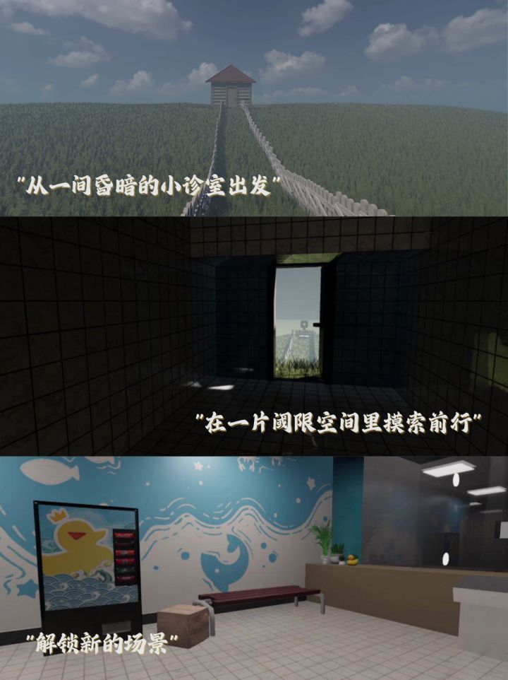 从一间昏暗的小诊室出发,你要在一片阈限空间里摸索前行,不断解锁新的场景。