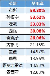 禁用率榜-布斯横空出世,猴哥痛失榜首