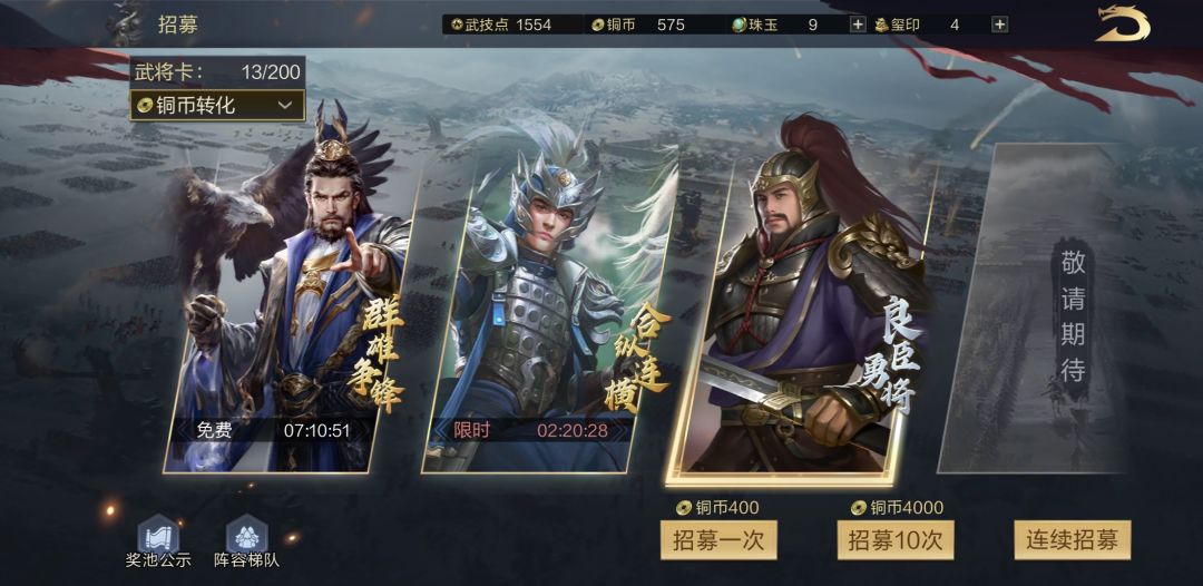 二十个任务很大几率出四星将,甚至必定获得五星于吉这个武将,每天做完是必须要去的。