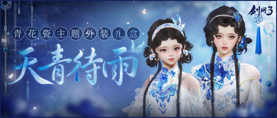 青花点白釉,千年色未昏,《剑网3》全新系列外装5月8日即将上线,青花瓷主题外装礼盒“天青待雨”今日优雅登场!采用多种工艺勾勒水墨丹青,将蓝白美学与传统审美巧妙结合,凝练青花瓷的细腻神韵,再绘釉蕴玄工!