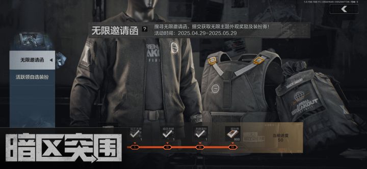 这次的活动之一无限邀请函,在我全部整完后说说我的客观感受吧。首先呢,以这次的活动来讲,算是比较一个好的活动,在4月21号至5月5号在综合板块发“一起上岸”就可以获得一份科恩币礼包,最高还能获得58888科恩币。而另一个就是收集无限的邀请函,这个邀请函基本上在对局中的衣服里有概率刷出,不过概率比较低。所以这里我也推荐大家去强化捡,因为比普通的爆率高很多。做完还可以白拿一套夹克,还有一些装扮券,可见得这个活动确实不错的。