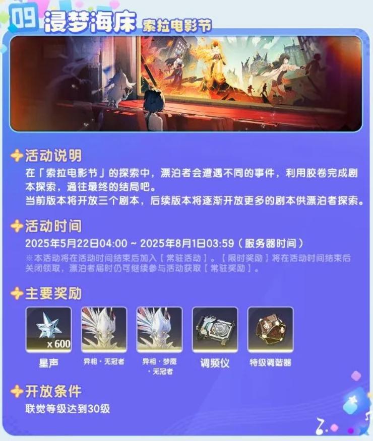 【浸梦海床】将于5月22日开启,完成活动后可以获得600星声及其他奖励,