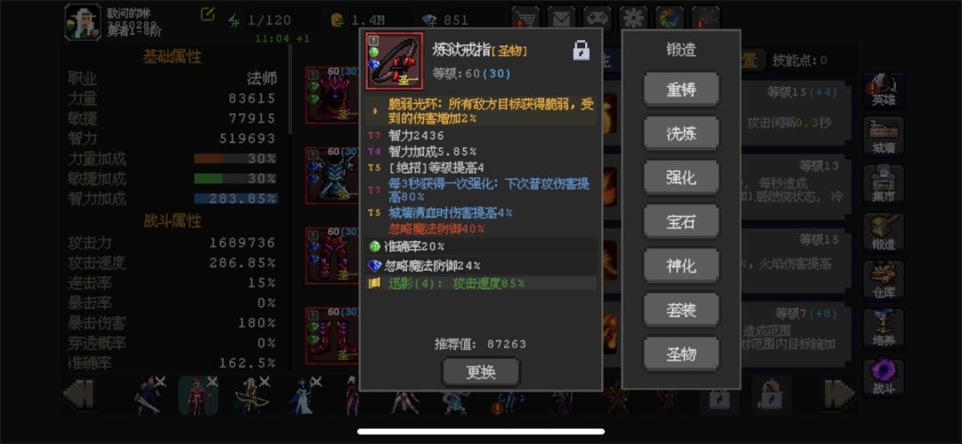 既然是主C全部技能无条件加满,当然萌新刚玩想要凑满全15也不容易。特别五芒星项链也是好不容易出来的,商店记得广告和钻石刷新前期赶紧刷一条佩戴。