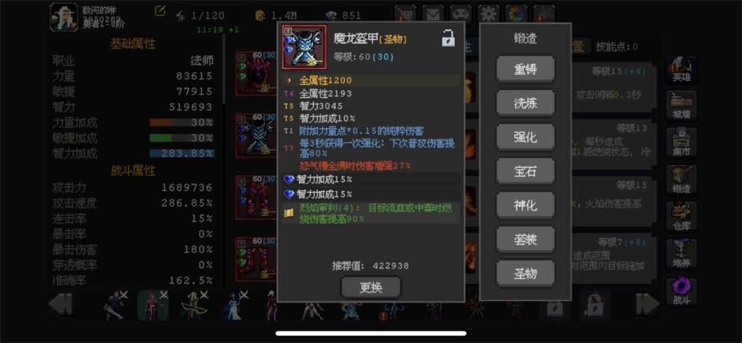 罪恶护甲(魔龙护甲) 怒气全满增伤和蓝宝石(圣物全属性1200)
