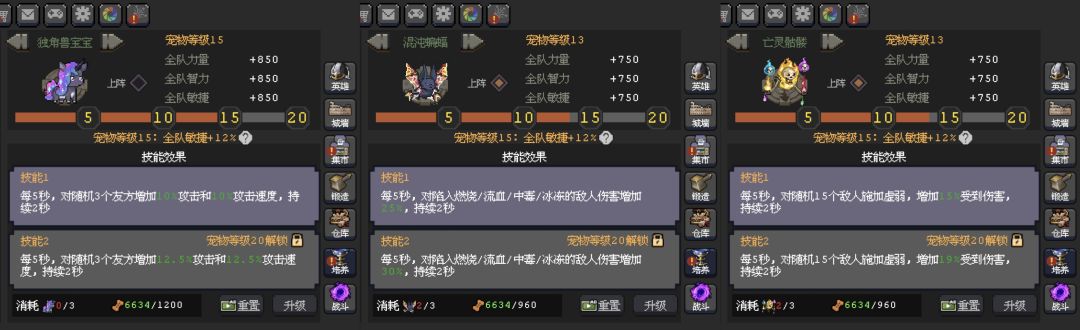 由于前期宠物召唤等级低只能上阵2只宠物这里推荐人手一只的独角兽搭配骷髅