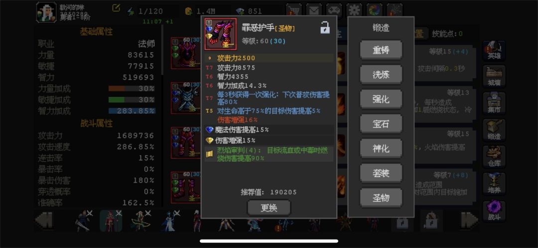 罪恶护手 伤害增强16%和黄宝石(圣物攻击力2500)