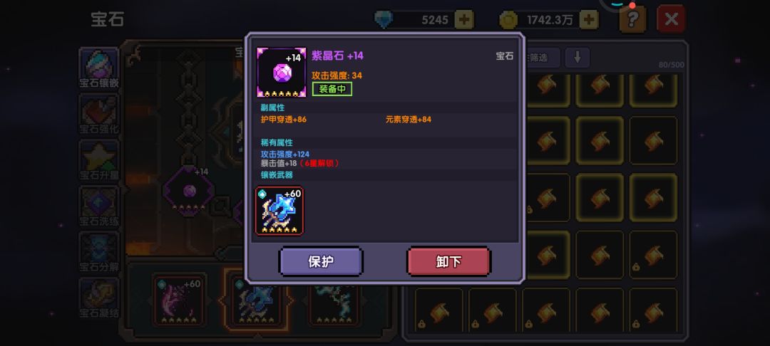 ③分解紫、橙宝石可以获得洗练石,还有一些商店、活动可以购买和兑换。有洗练石后就可以洗橙宝石的副属性,洗成元素穿透+爆伤/属攻/攻强/护穿即可。