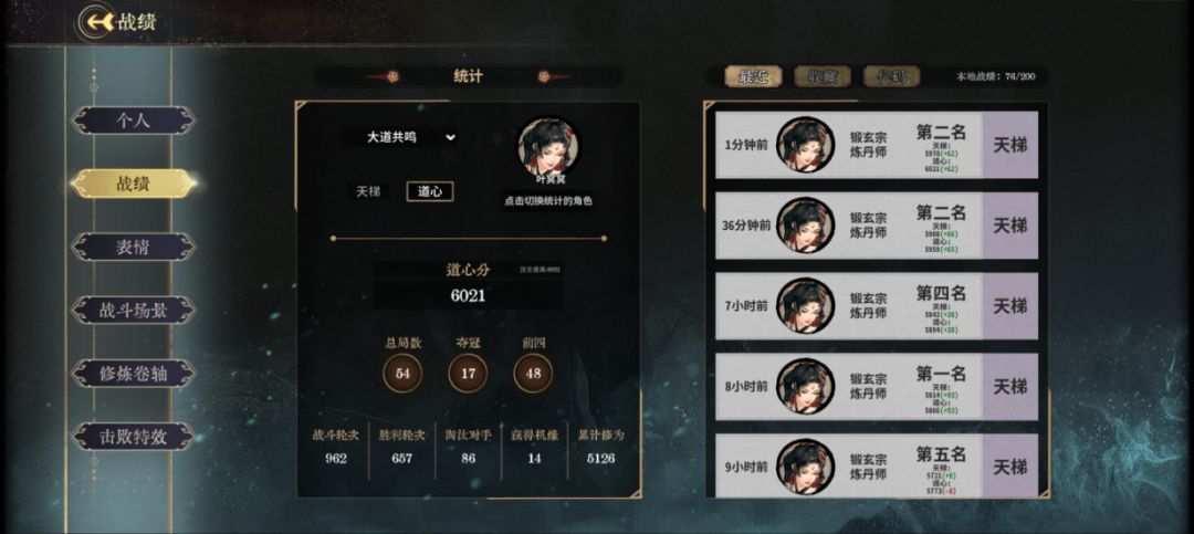 由于在写这篇攻略时处于大道共鸣赛季末期,过多的讨论赛季机制是没有太多参考意义的,所以这里更多的讨论不依赖赛季机制。现在让我们回到那个曾经熟悉的环节:丹叶冥冥,非常经典的玩法,可以支持锻玄主流三套并且三套,即使是疯魔削弱和某些数值膨胀的今天,该玩法仍然具有一定的强度。我自己也是用别的号纯玩丹重新打了一遍(只玩丹打的数据肯定是不好看的,在不利于丹或者说需要琴对策的局坐大牢),不过玩的时候时间有限,打不了那么高分了(更高的分段在自己号玩过)。我想说的是,不管高低分段,只要你想,都可以玩,只是分高了上分过程会可能有点煎熬