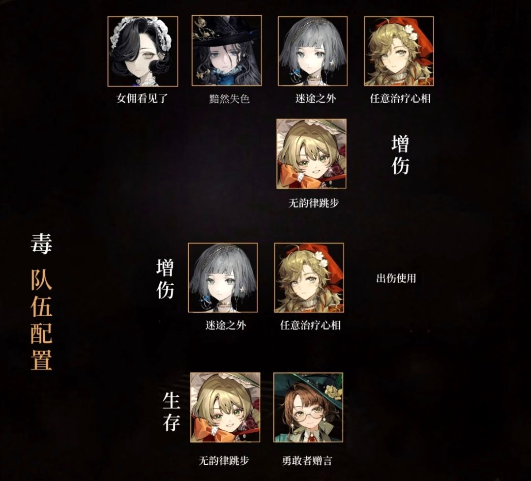 毒队-蓝手帕苏芙比笃笃骨,三人同队,队伍心相分配为,