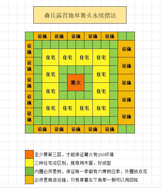 这两天玩露营挺上头,在网上找到的篝火永续攻略,要么卡了扩地BUG,要么摆了两个篝火。于是琢磨了个用单个篝火完成永续狂热的布局。![[表情_斜眼笑]](https://img-tc.tapimg.com/market/images/d1b1dcc88719f6c9a639728cde152c4b.png)