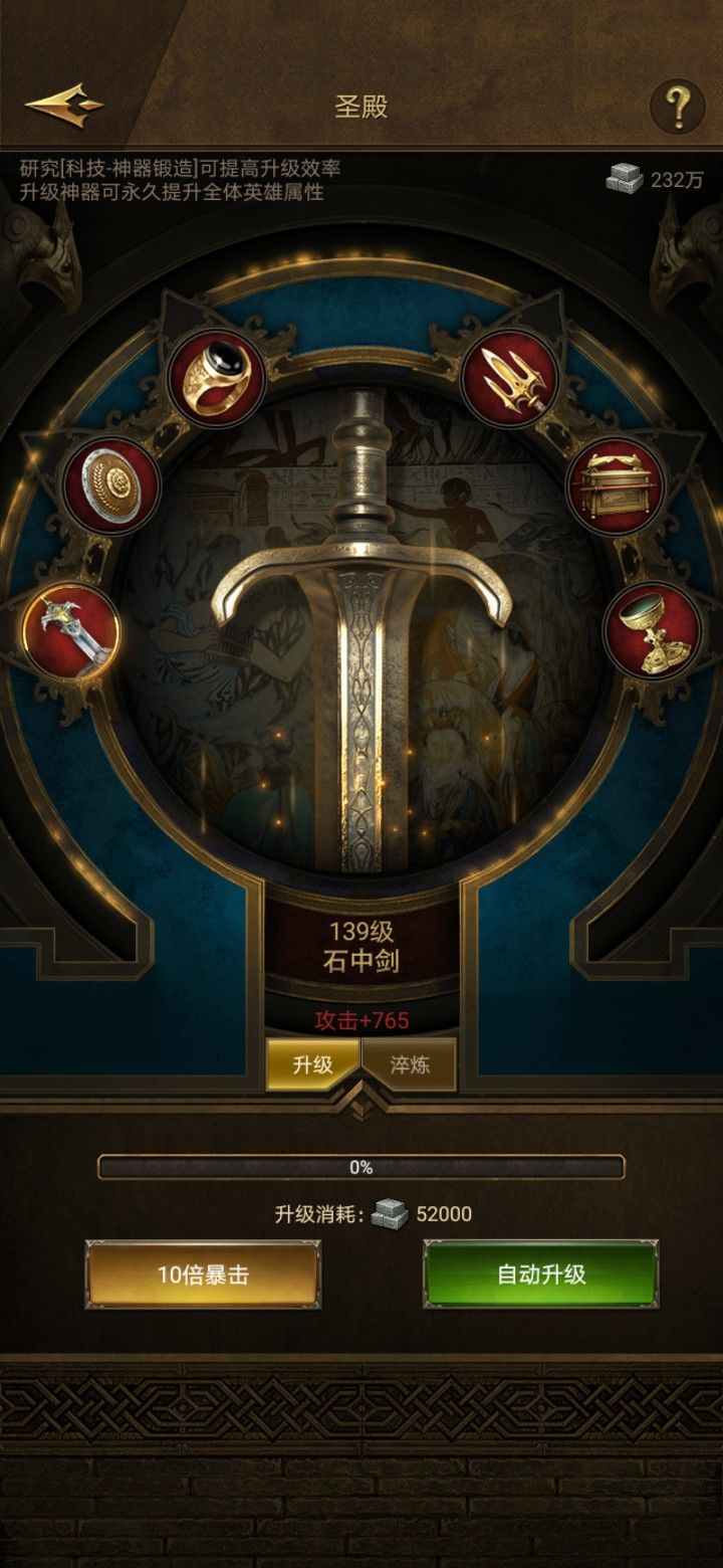 神器的升级:待暴击,升神器。主防御、次攻击,最后兵力。