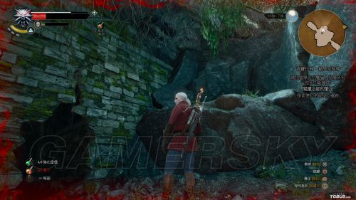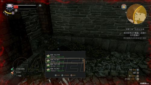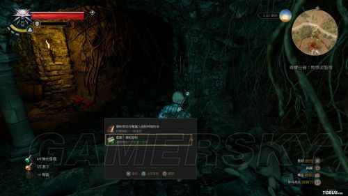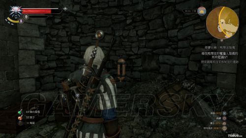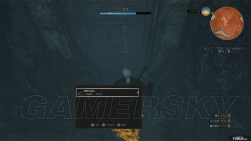 相比较狮鹫兽护甲蓝图,猫学派护甲蓝图拿法要稍显复杂一些。首先玩家要从城市的侧边阶梯进入图中的洞穴