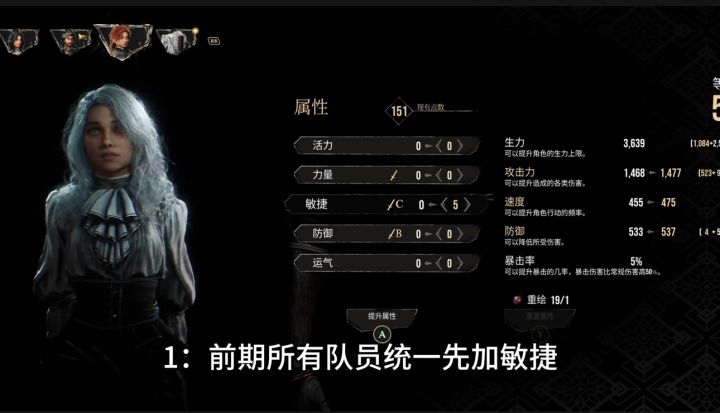 一、前期所有队员统一先加敏捷,因为速度很重要