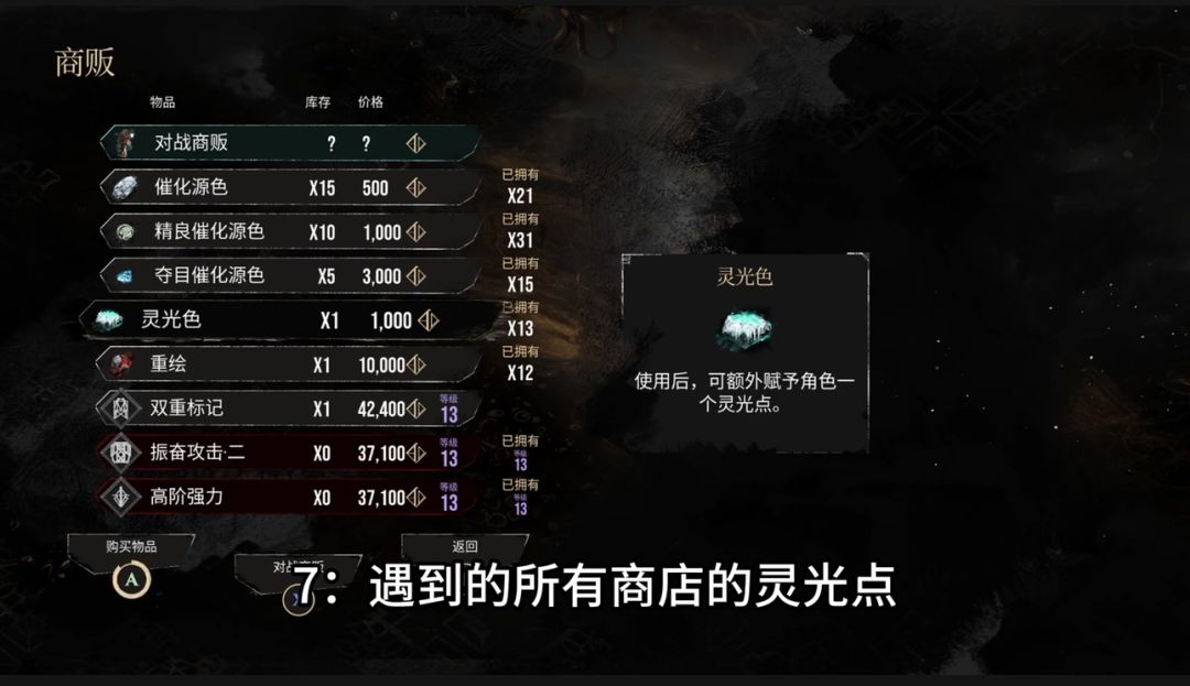 七、遇到的所有商店的灵光点都要购买