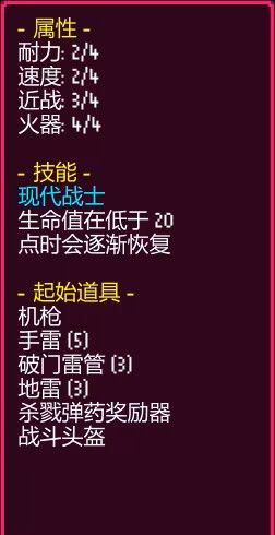 (技能详解:现代战士:生命值低于20自动回复(升级可提升到40上限))
