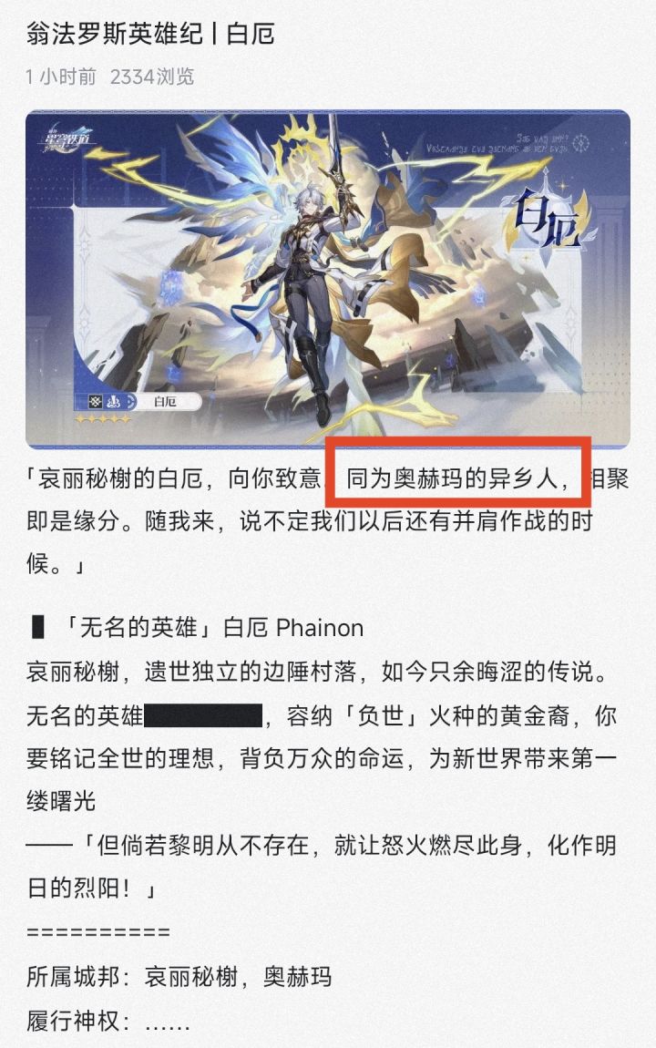白厄和开拓者一样不是翁法罗斯人