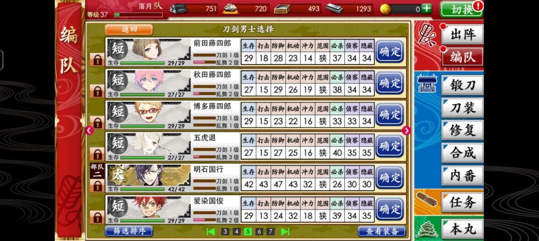 废婶制造机的几把我都锻出来了,长谷部,烛台切,巴形,歌仙。昨天意外锻出数珠丸,但是我想要三日月啊!姥爷来了,就差爷爷惹😢我要看板郎啊!那把限定剑我只不指望了QAQ,求锻刀公式!