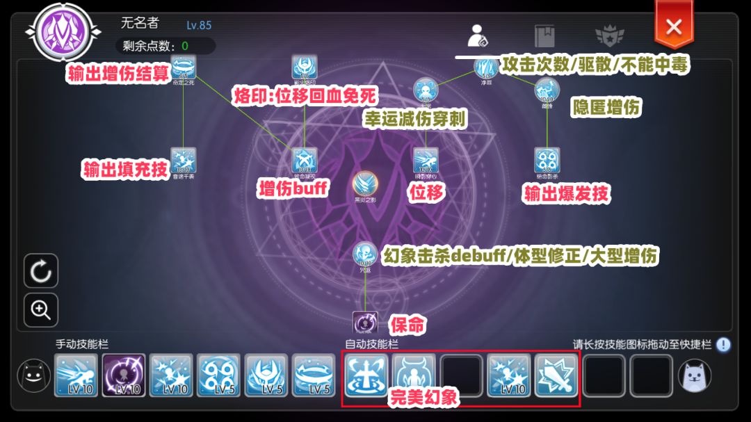 无名者的特性为:召唤普通幻象和完美幻象为自己战斗,根据幻象获得相关战斗增益和效果