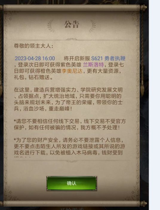 如果是和阵营的小伙伴或社区的小伙伴一起刷强盗,需要在新开区时第一时间进服,约好选择的阵营,同时进服后,会在同一张地图,配合刷强盗会快很多。例如阵营都选择亚洲,会一起出现在三级图大不列颠。三第一天任务先升级到50级左右,快些进行大概1小时,直接秒主城,秒大学,大学研究初级统帅,可以使用3个英雄上阵就可以。37级开始可以公屏聊天。