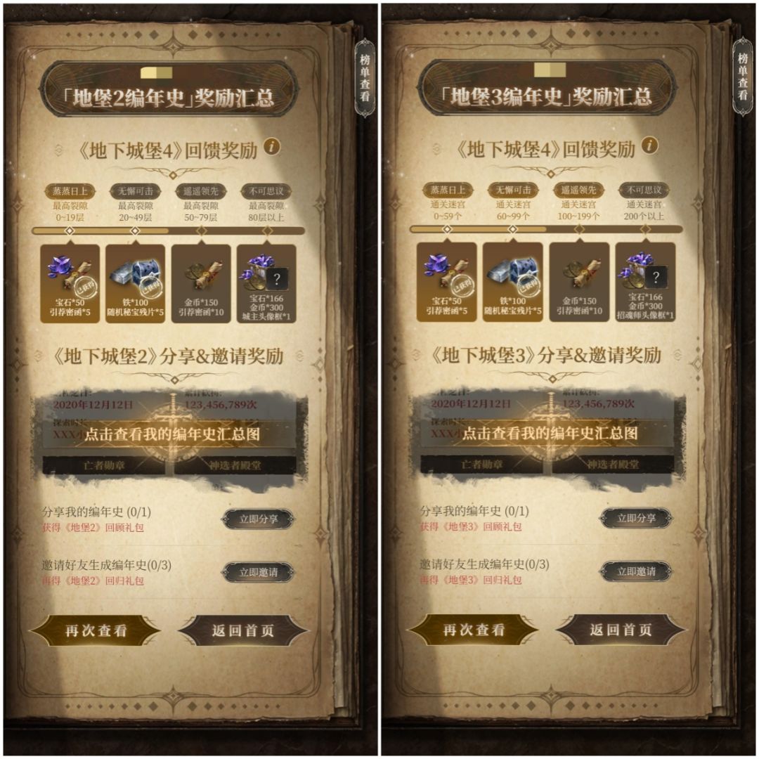在活动中回顾你的地堡2/地堡3专属历程,即可根据你的里程数据解锁对应的地堡4公测奖励!分享和邀请好友还将获得地堡2/地堡3游戏礼包!