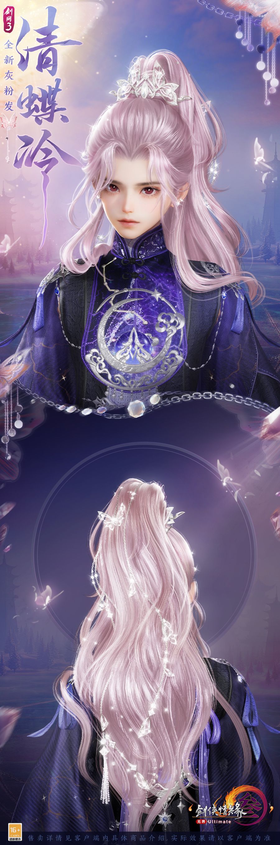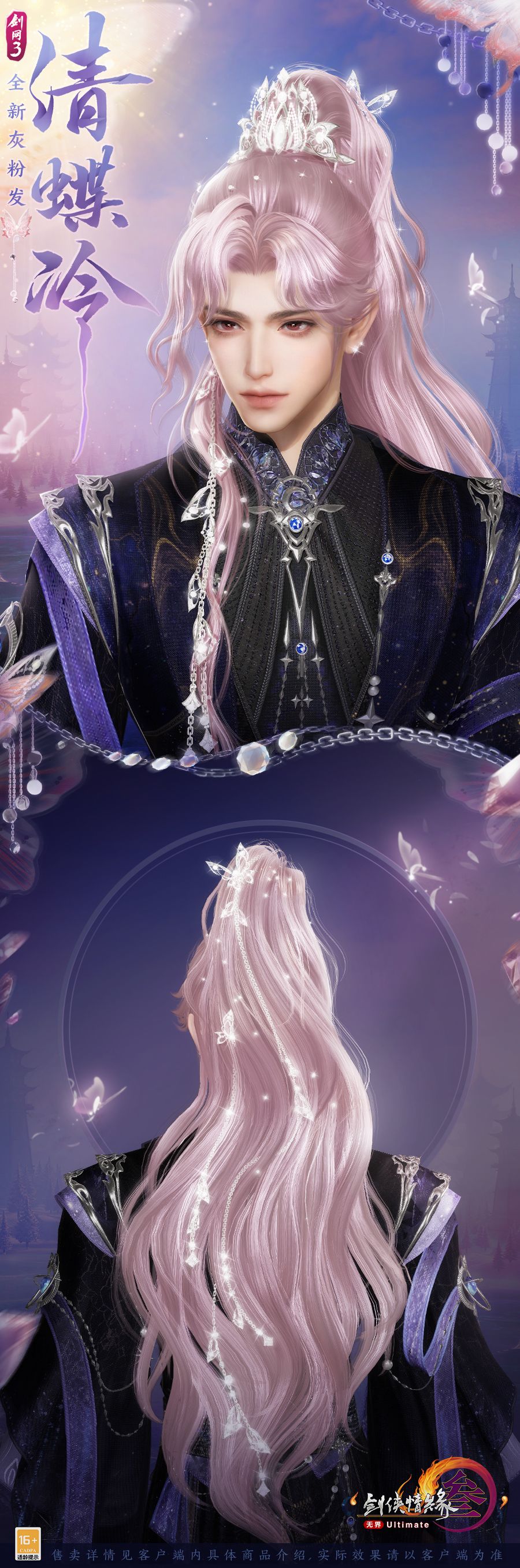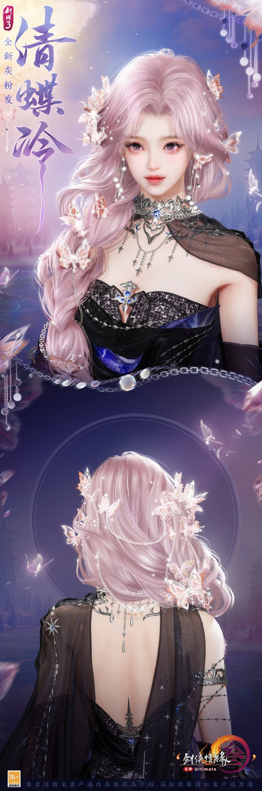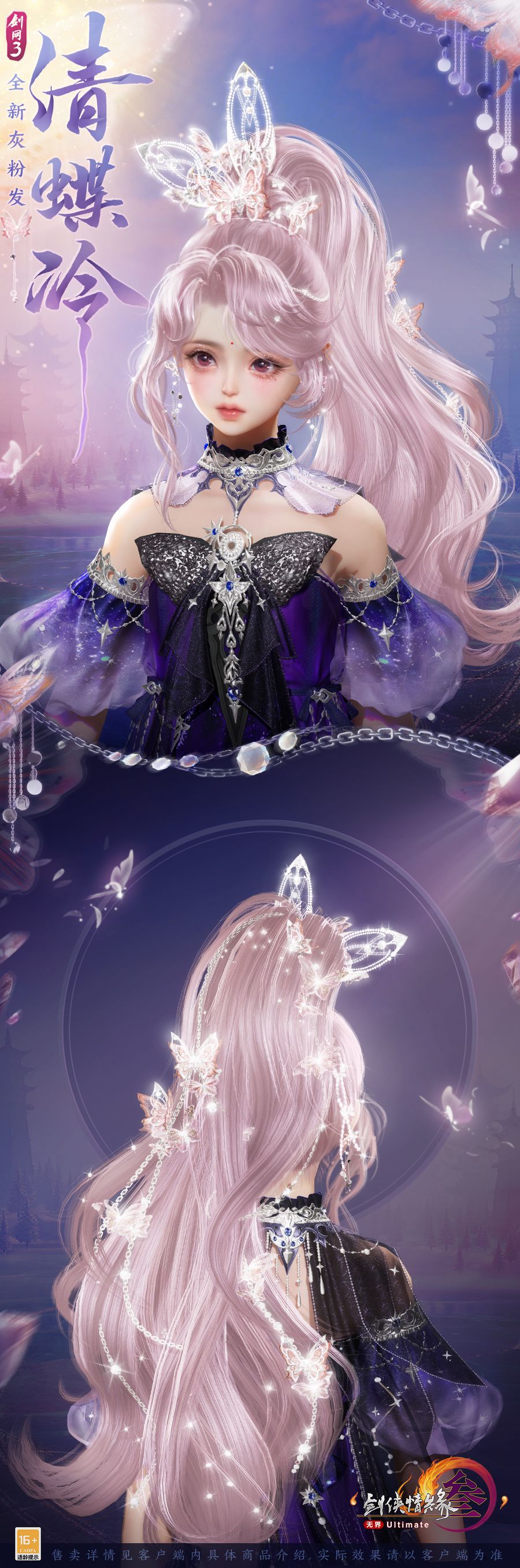 暮雪揉碎胭脂色,清蝶伴花垂云鬓,全新灰粉发“清蝶冷”5月8日翩然而至!卷发落笔浪漫韵味,以低饱和度灰调粉色着色,在保持与游戏画面有较好兼容性的同时,又能够满足侠士多彩装扮需求!