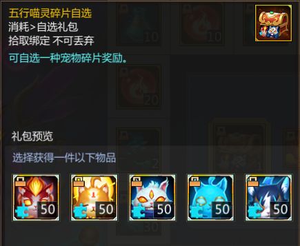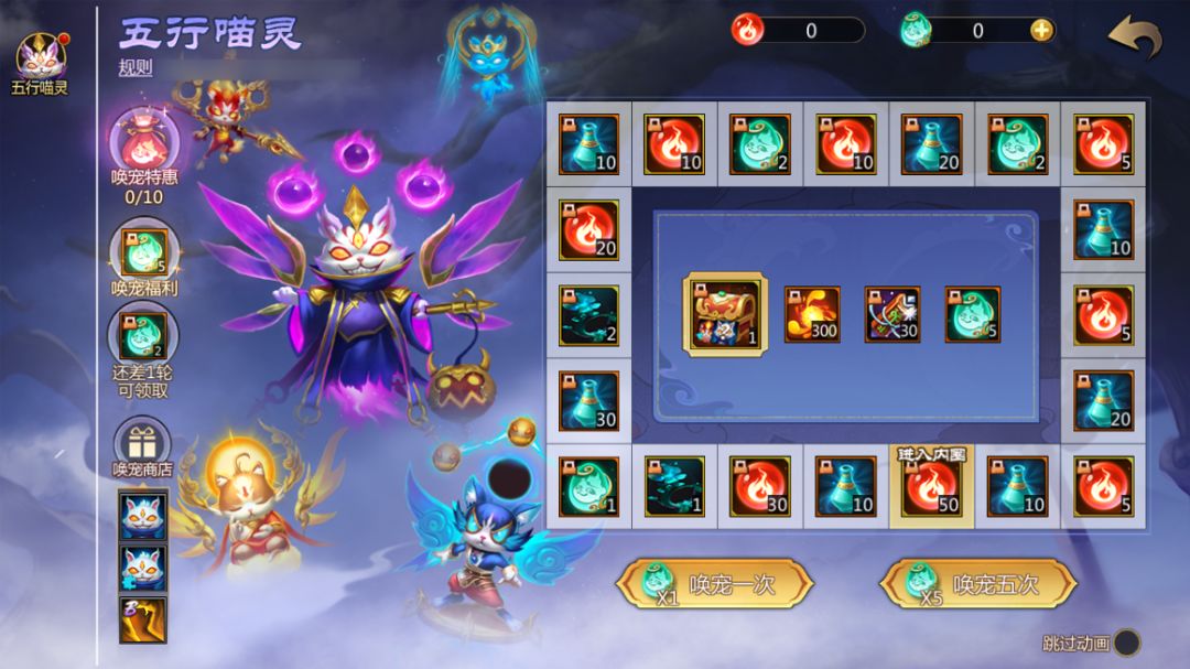 (可获得和进阶【燧明火神喵、菩提心佛喵、幽暗梦魇喵、冰夷水深喵、轩辕雷神喵】中的任意宠物)