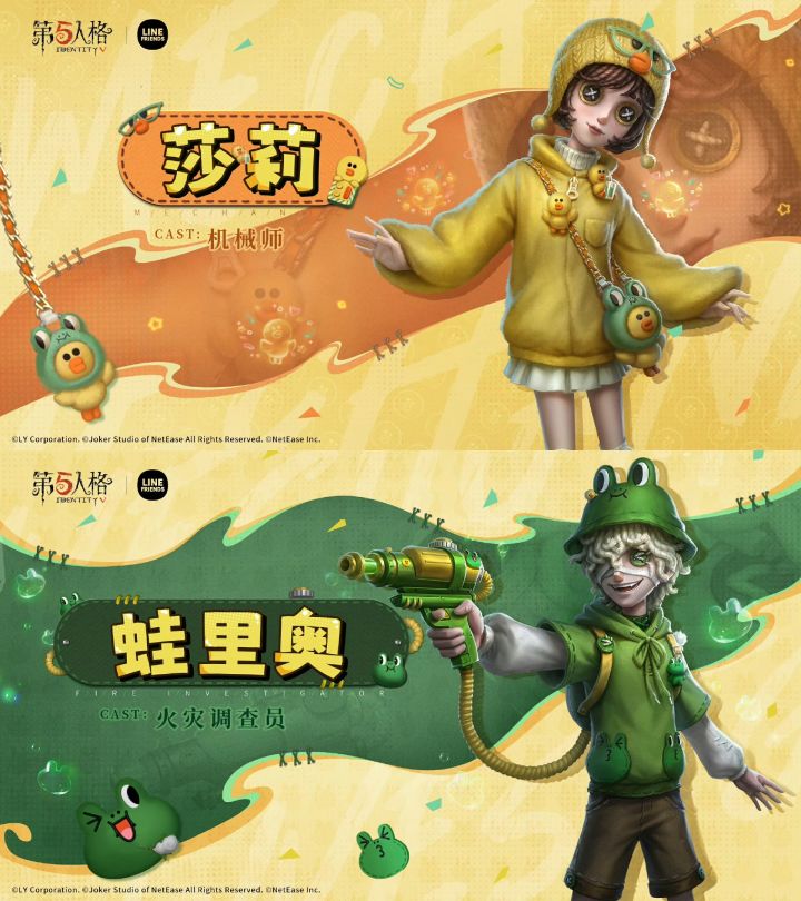 5月6日,第五人格官方发文表示5月29日将再次联动LINE FRIENDS,分别是机械师奇珍时装-莎莉,火灾调查员奇珍时装-蛙里奥。